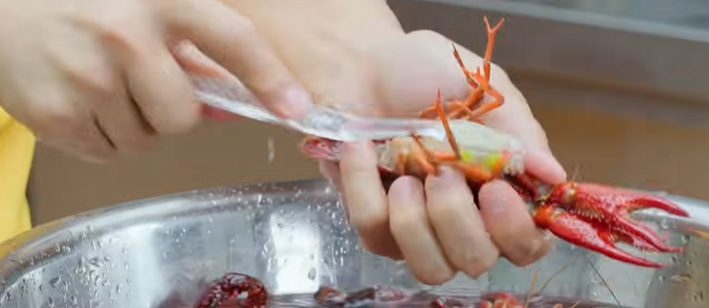 - 刷洗背部、腹部(单手从双钳根部往上捏住)
